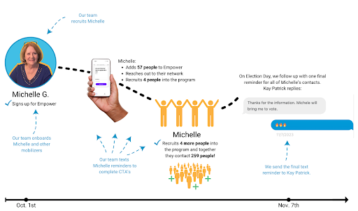 By early October, the program had grown so quickly that—due to budget constraints—we had to stop recruiting new Mobilizers. Even with that cap, 85% of Mobilizers matched in VAN, and the data confirmed they were: